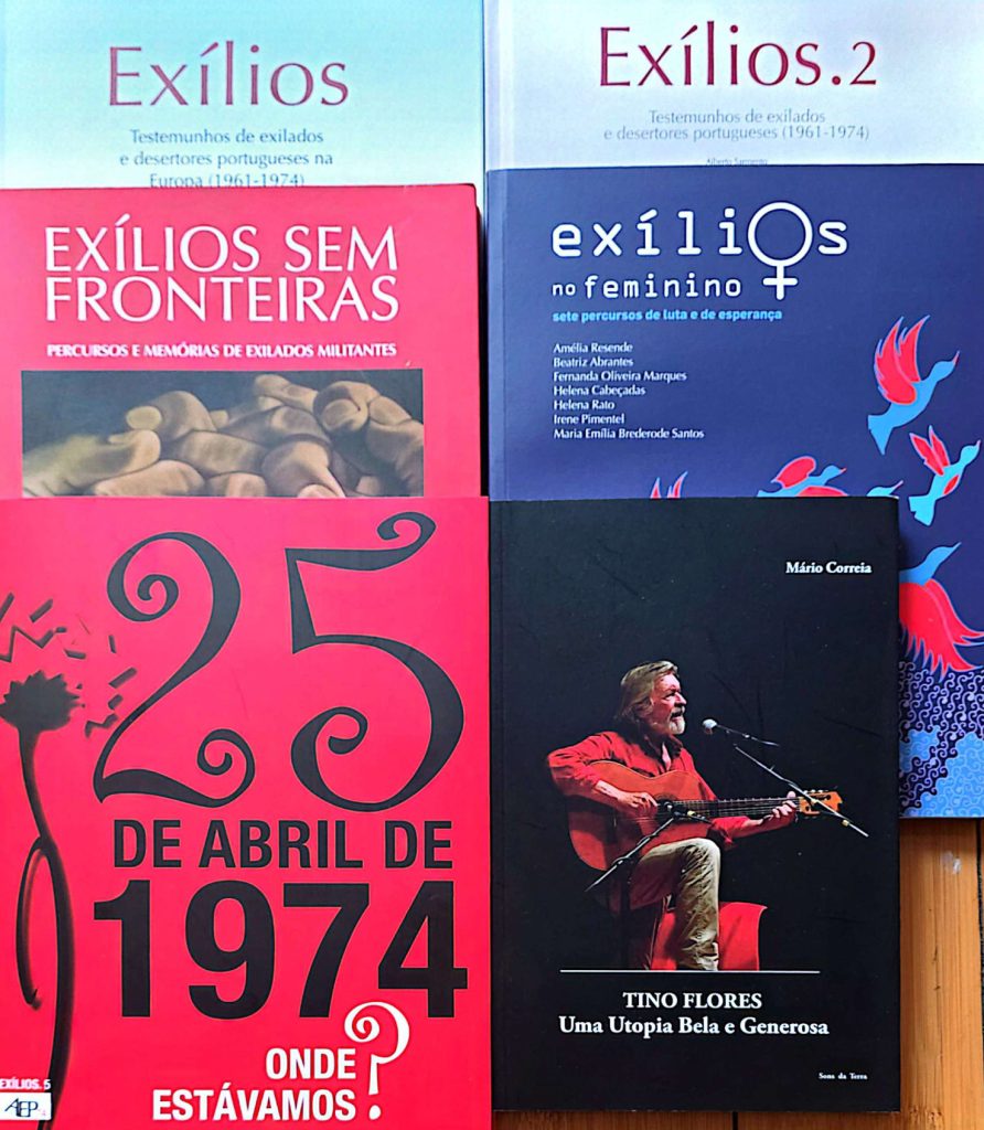 25 de Abril 1974, Onde Estávamos?, Exílios no Feminino, Exílios Sem Fronteiras, Exílios 2, (15 Euros cada) e Tino Flores (10 Euros)